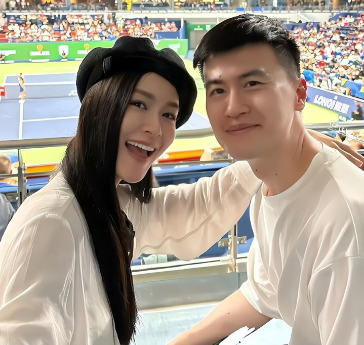 当天她是与丈夫一同出席,期间两人时不时低声耳语,直接甜度超标。