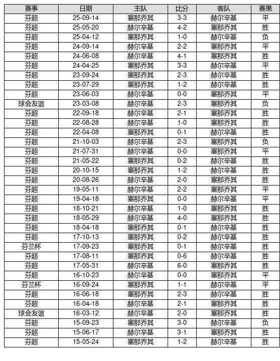 赫尔辛基 VS 塞那乔其两队近10年的交战次数为35场,赫尔辛基22胜9平4负,赢球概率为62.9%,平局概率为25.7%,输球概率为11.4%。