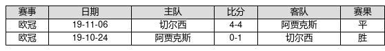 切尔西 VS 阿贾克斯两队近10年的交战次数为2场,切尔西1胜1平0负,赢球概率为50.0%,平局概率为50.0%,输球概率为0.0%。