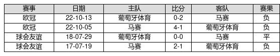 葡萄牙体育 VS 马赛两队近10年的交战次数为4场,葡萄牙体育0胜1平3负,赢球概率为0.0%,平局概率为25.0%,输球概率为75.0%。