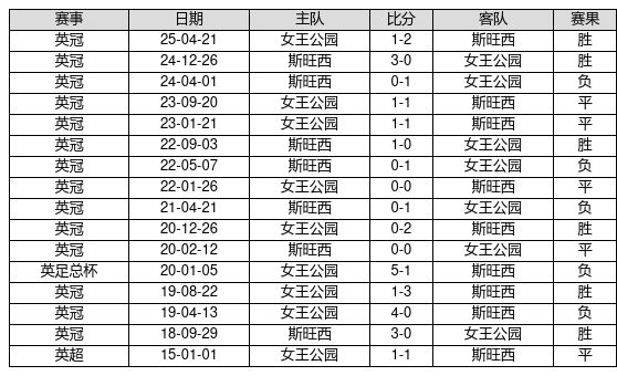 斯旺西 VS 女王公园两队近10年的交战次数为16场,斯旺西6胜5平5负,赢球概率为37.5%,平局概率为31.2%,输球概率为31.2%。