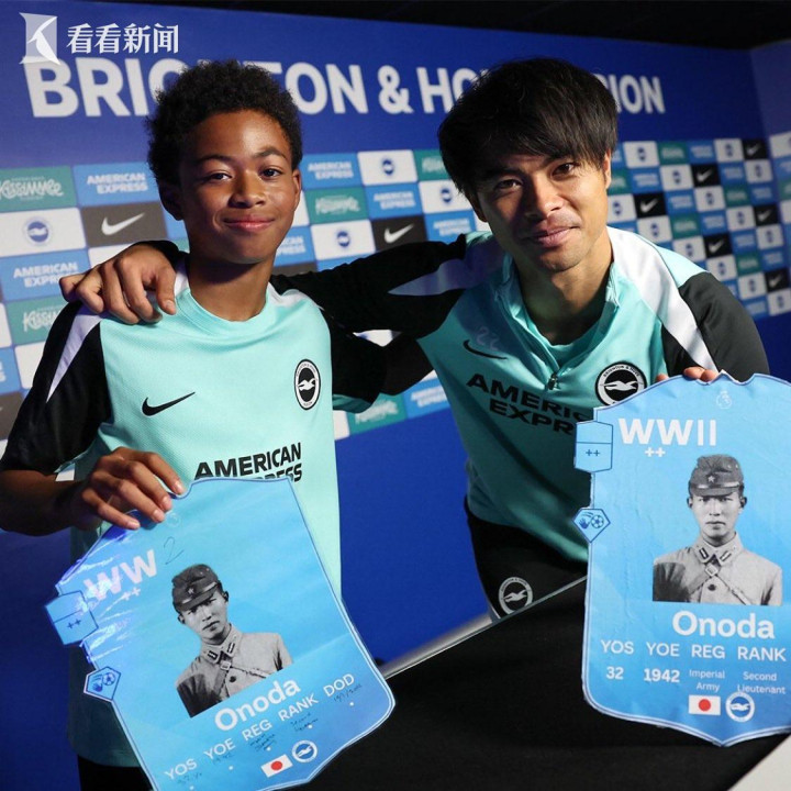 近日,日本国脚三笘薰与一名小球员各自手持一张印有二战时日本军官小野田宽郎头像的卡片,引发争议。英超布莱顿俱乐部就此道歉。
